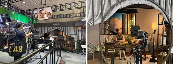 走進富士膠片(中國)展臺,一個融合東方美學(xué)與異域風情的“古風書房”影棚場景引人注目,暗調(diào)氛圍中層次分明的光影營造出濃郁的電影質(zhì)感,讓人仿佛置身影視創(chuàng)作現(xiàn)場。展臺內(nèi),四組精心設(shè)計的機位以不同高度、角度排布,模擬影視創(chuàng)作中的多視角需求——這里不僅有Duvo系列三款PL卡口電影變焦鏡頭“HZK25-1000”“HZK24-300”“HZK14-100”的實景演示,更設(shè)置了由4K廣播電視變焦鏡頭“FUJINON LA30x7.8BRM-XB2”(以下簡稱“LA30”)組成的移動拍攝位,讓參觀者能夠近距離操作體驗,直觀感受從廣角到長焦、從固定機位到動態(tài)跟拍的豐富創(chuàng)作可能。