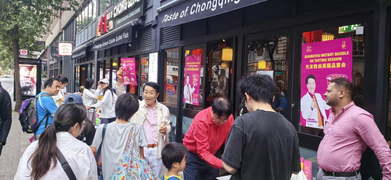 2025年8月16日及19日,光友粉絲團在倫敦重慶味道組織光友粉絲英國品鑒會,餐廳和街頭香氣四溢,光友粉絲英國品鑒會在此火熱開啟,光友低 Gi酸辣粉、光友酸辣粉網(wǎng)紅杯、光友mini 杯、光友綿陽米粉、光友9999重慶小面、光友紅油面皮等多款產(chǎn)品集體亮相,剛一擺上展臺就吸引全場目光,吸引倫敦街頭來自英國、德國、法國等世界各國成百上千的消費者上前品嘗。