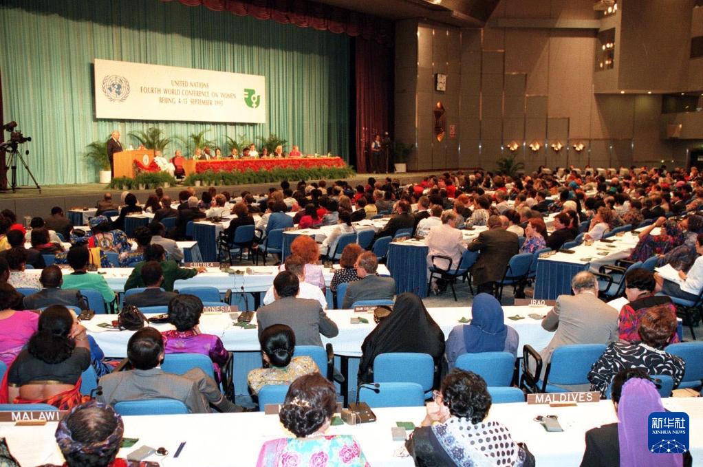 1995年9月4日,聯(lián)合國(guó)第四次世界婦女大會(huì)在中國(guó)北京召開(kāi)。會(huì)議通過(guò)了具有里程碑意義的《北京宣言》和《行動(dòng)綱領(lǐng)》。新華社發(fā)