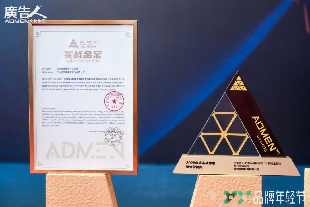 近日,以“實效創(chuàng)新 與智共生”為主題的2025ADMEN國際大賞在北京廣播大廈舉行。昆明高新區(qū)企業(yè)昆藥集團股份有限公司(以下簡稱“昆藥集團”)憑借《昆中藥1381攜手央視鑄就“中藥瑰寶品牌”整合營銷案例》,從萬余件參評作品中脫穎而出,榮膺“整合營銷類 實戰(zhàn)金案”殊榮,在這場聚集了500余家行業(yè)頭部機構(gòu)、媒體平臺及品牌主的年度盛典中,充分彰顯昆藥集團及昆中藥1381老字號藥企在AI時代的創(chuàng)新傳播實力。
