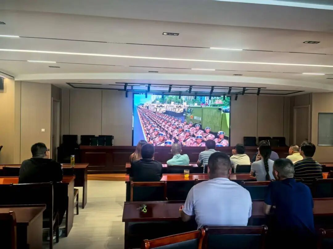 鎮(zhèn)江高新區(qū)商務(wù)局全體干部職工集中觀看紀念中國人民抗日戰(zhàn)爭暨世界反法西斯戰(zhàn)爭勝利80周年大會及閱兵儀式直播。此次活動是致敬歷史、緬懷先烈的一場重要典禮,展示了我國國防科技的強大實力,彰顯了中華民族捍衛(wèi)和平的堅定決心。觀看過程中,大家神情專注,沉浸式感受閱兵現(xiàn)場的莊嚴氛圍和磅礴氣勢,內(nèi)心深受震撼、倍感自豪。大家紛紛表示要傳承和弘揚偉大抗戰(zhàn)精神,將愛國熱情轉(zhuǎn)化為銳意進取的工作動力,以更加昂揚的姿態(tài)投身商務(wù)工作實踐,為高新區(qū)高質(zhì)量發(fā)展貢獻力量。