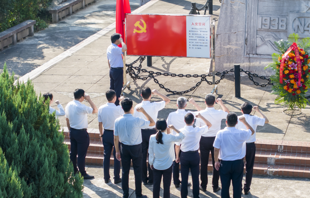 會(huì)前,鎮(zhèn)江高新區(qū)黨工委理論學(xué)習(xí)中心組成員集體參觀韋崗戰(zhàn)斗陳列室,了解新四軍挺進(jìn)蘇南、首戰(zhàn)告捷的歷史場(chǎng)景。瞻仰韋崗戰(zhàn)斗勝利紀(jì)念碑,向革命先輩敬獻(xiàn)花籃。在紀(jì)念碑前,全體中心組成員面向黨旗莊嚴(yán)宣誓,重溫入黨誓詞,在實(shí)地感悟中傳承紅色基因,凝聚前進(jìn)力量。