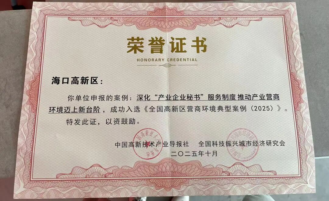10月29日,第二十一屆國家高新區(qū)發(fā)展戰(zhàn)略研究年會暨2025國家高新區(qū)創(chuàng)新發(fā)展論壇在杭州舉辦,會上正式發(fā)布《全國高新區(qū)營商環(huán)境典型案例(2025)》。其中,海口高新區(qū)以打造生物醫(yī)藥產(chǎn)業(yè)營商環(huán)境“小切口”報送的《深化“產(chǎn)業(yè)企業(yè)秘書”服務(wù)制度推動產(chǎn)業(yè)營商環(huán)境邁上新臺階》案例成功入選,標(biāo)志著園區(qū)在深化“放管服”改革、優(yōu)化營商環(huán)境方面的創(chuàng)新實踐獲得了國家層面的高度認可,為全國高新區(qū)提供“自貿(mào)港經(jīng)驗”。