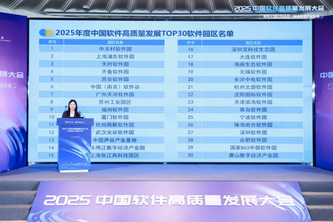 會(huì)上發(fā)布了多項(xiàng)行業(yè)重量級(jí)榜單,其中,西安軟件園成功入選“2025年度中國軟件高質(zhì)量發(fā)展TOP30軟件園區(qū)”榜單,排名全國第五,彰顯了西安軟件園在軟件產(chǎn)業(yè)領(lǐng)域的卓越地位。