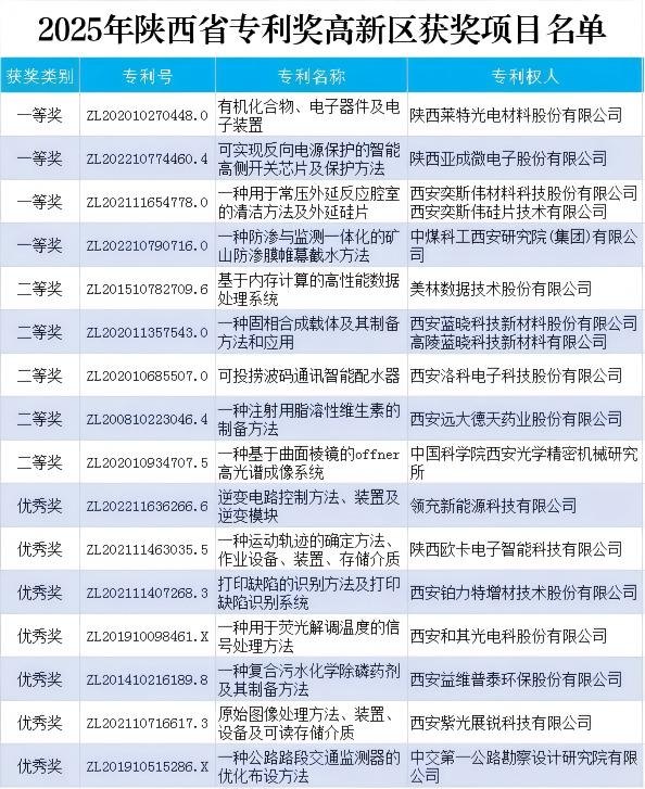 近日,陜西省人力資源和社會保障廳、陜西省知識產(chǎn)權(quán)局聯(lián)合發(fā)布《關(guān)于表彰2025年陜西省專利獎的決定》,西安高新區(qū)表現(xiàn)突出,共有16項專利獲獎,包括一等獎4項、二等獎5項、優(yōu)秀獎7項,獲獎數(shù)量與質(zhì)量均位列全省前茅,充分彰顯了區(qū)域創(chuàng)新實力。