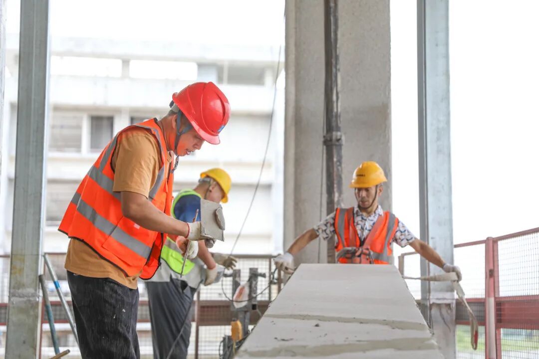 在項(xiàng)目建設(shè)現(xiàn)場(chǎng),多輛登高車、挖掘機(jī)等機(jī)械來回作業(yè),180余名工人在各個(gè)作業(yè)面上施工,正緊鑼密鼓地進(jìn)行玻璃幕墻、室內(nèi)精裝修、園林綠化等工作,一派繁忙。自項(xiàng)目正式建設(shè)以來,核心團(tuán)隊(duì)堅(jiān)持“節(jié)假日不停工”錨定目標(biāo)忙生產(chǎn),結(jié)合項(xiàng)目特點(diǎn),樹立快速建造、優(yōu)質(zhì)履約的理念,認(rèn)真編制各種施工方案,堅(jiān)持設(shè)計(jì)引領(lǐng)、技術(shù)先行,使得項(xiàng)目整體進(jìn)度、施工質(zhì)量、文明施工等全處于受控狀態(tài)。