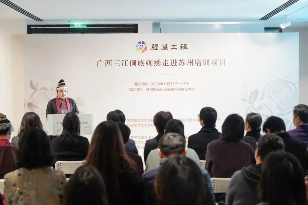 11月18日,“強基工程——廣西三江侗族刺繡走進蘇州”培訓項目在蘇州高新區(qū)啟動,活動以刺繡為紐帶,搭建起兩地民族民間文藝互學互鑒、共融共生的橋梁。