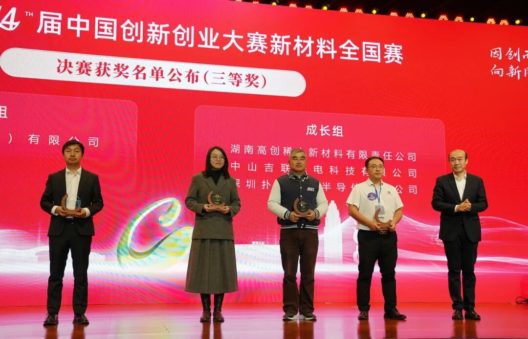 11月20日,匯聚全國37個賽區(qū)、近200個新材料領(lǐng)域優(yōu)秀項目參賽的國家級科創(chuàng)盛會——第十四屆中國創(chuàng)新創(chuàng)業(yè)大賽新材料全國賽在淄博高新區(qū)圓滿結(jié)束。工業(yè)和信息化部火炬中心相關(guān)領(lǐng)導(dǎo)出席頒獎典禮,淄博高新區(qū)工委書記、管委會主任王曉東,淄博高新區(qū)領(lǐng)導(dǎo)王顯強(qiáng)、王飛分別為獲得大賽一、二、三等獎的企業(yè)代表頒獎。