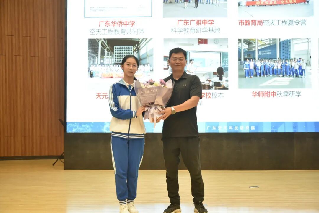 講座現(xiàn)場氣氛熱烈,師生們踴躍參與互動。南沙灣區(qū)實驗學(xué)校的同學(xué)們表現(xiàn)出了濃厚的興趣和積極的思考,沙建科通過自身科研經(jīng)歷分享技術(shù)攻關(guān)故事,既傳遞了專業(yè)知識,更詮釋了嚴(yán)謹(jǐn)求實的科學(xué)家精神。同時,他表達了希望同學(xué)們能以此次講座為起點,主動關(guān)注科技動態(tài),積極參與科學(xué)實踐,未來為國家的科技強國建設(shè)貢獻力量。活動尾聲,學(xué)生代表向沙建科獻上鮮花,全體師生與專家合影留念,定格下這場科學(xué)與夢想的相遇瞬間。