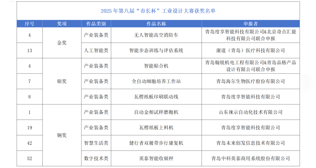為搭建工業(yè)設計與產(chǎn)業(yè)發(fā)展協(xié)同創(chuàng)新平臺,充分發(fā)揮工業(yè)設計對制造業(yè)高端化、智能化、綠色化、融合化發(fā)展的促進作用,青島市工業(yè)和信息化局組織開展了2025年第八屆“市長杯”工業(yè)設計大賽,以“智連萬物 設計無界”為主題,旨在持續(xù)推動工業(yè)設計與制造業(yè)高質量發(fā)展深度融合。近日,大賽獲獎名單正式公布。