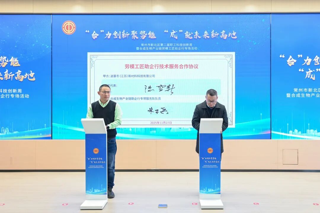 11月27日,常州高新區(qū)(新北區(qū))舉辦第二屆職工科技創(chuàng)新周暨合成生物產(chǎn)業(yè)鏈勞模工匠助企行專場活動(dòng)。本次活動(dòng)以“‘合’力創(chuàng)新聚勢能,‘成’就未來新高地”為主題,集中展示常州高新區(qū)職工科技創(chuàng)新成果,深化合成生物產(chǎn)業(yè)鏈協(xié)同發(fā)展,弘揚(yáng)工匠精神,激發(fā)創(chuàng)新活力,為推動(dòng)區(qū)域高質(zhì)量發(fā)展注入新動(dòng)能。