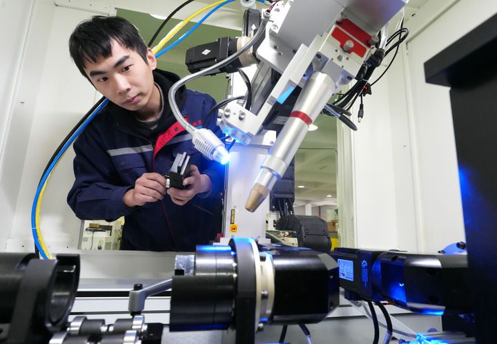2025年1月7日,浙江省紹興市上虞區(qū)浙江創(chuàng)新激光設(shè)備有限公司技術(shù)人員在調(diào)試四軸聯(lián)動工作臺激光焊接機(jī)。近年來,紹興市上虞區(qū)積極發(fā)展新質(zhì)生產(chǎn)力,專精特新企業(yè)培育成效顯著,有效助力經(jīng)濟(jì)發(fā)展。新華社記者 翁忻旸 攝