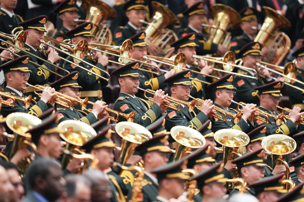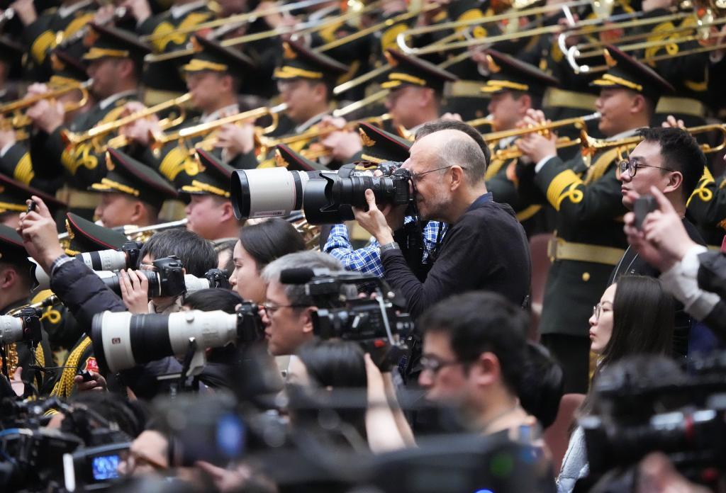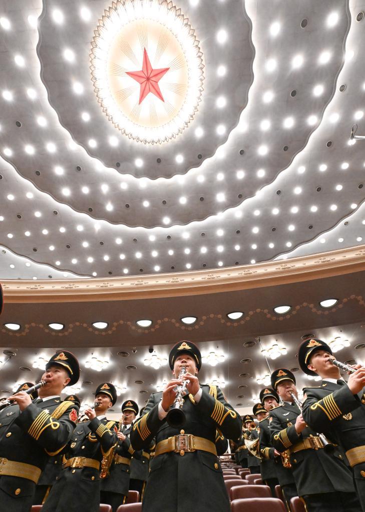 3月5日,十四屆全國人大三次會議開幕會在北京人民大會堂舉行。這是軍樂團在演奏。