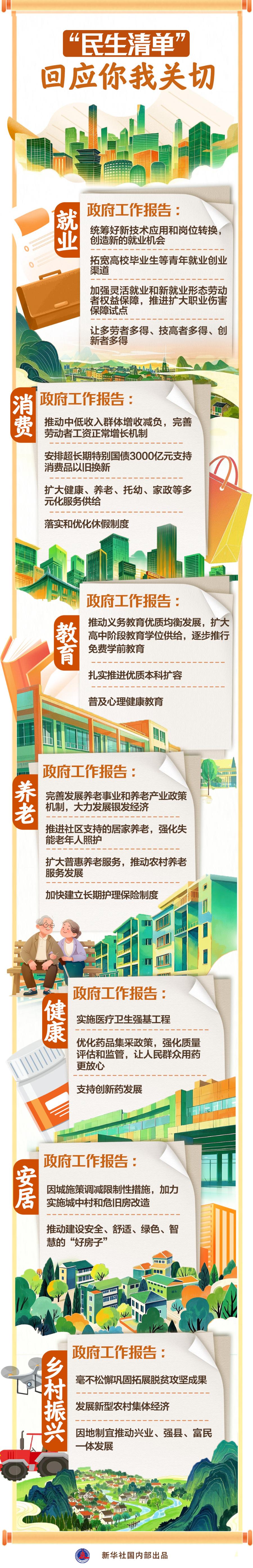 人民幸福安康是推動高質(zhì)量發(fā)展的最終目的。梳理報告中有新意、有溫度的惠民政策,一份“民生清單”躍然眼前,勾勒出一幅幅與你我密切相關(guān)的民生圖景。