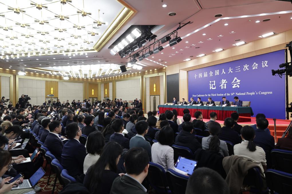 3月6日,十四屆全國(guó)人大三次會(huì)議在北京梅地亞中心新聞發(fā)布廳舉行記者會(huì)。國(guó)家發(fā)展和改革委員會(huì)主任鄭柵潔、財(cái)政部部長(zhǎng)藍(lán)佛安、商務(wù)部部長(zhǎng)王文濤、中國(guó)人民銀行行長(zhǎng)潘功勝、中國(guó)證券監(jiān)督管理委員會(huì)主席吳清就發(fā)展改革、財(cái)政預(yù)算、商務(wù)、金融證券等相關(guān)問題回答中外記者提問。