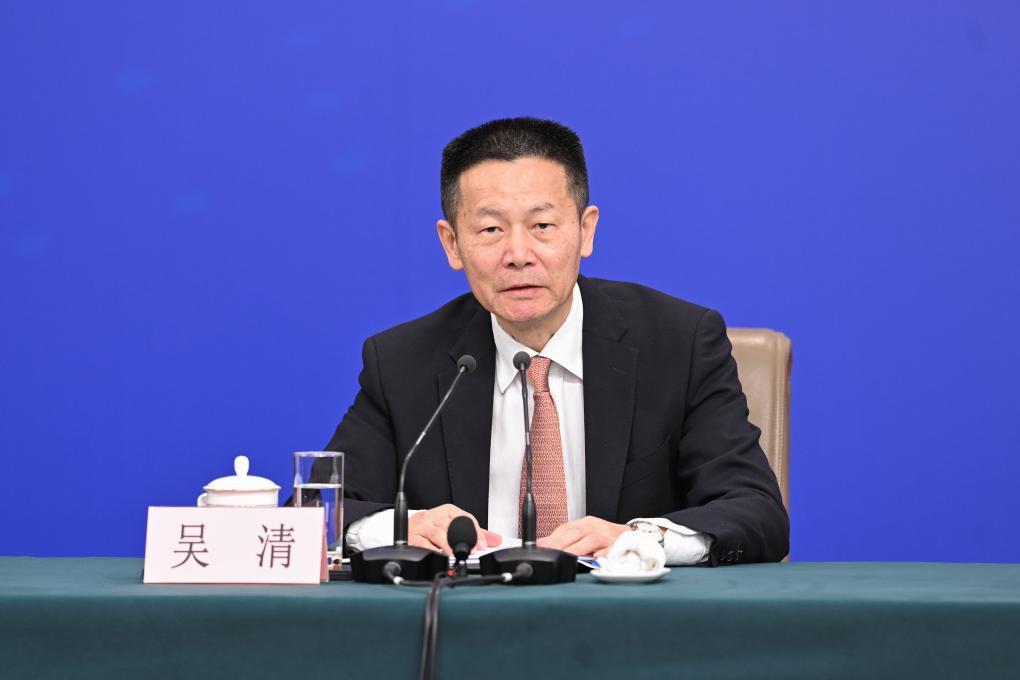 3月6日,十四屆全國(guó)人大三次會(huì)議在北京梅地亞中心新聞發(fā)布廳舉行記者會(huì)。國(guó)家發(fā)展和改革委員會(huì)主任鄭柵潔、財(cái)政部部長(zhǎng)藍(lán)佛安、商務(wù)部部長(zhǎng)王文濤、中國(guó)人民銀行行長(zhǎng)潘功勝、中國(guó)證券監(jiān)督管理委員會(huì)主席吳清就發(fā)展改革、財(cái)政預(yù)算、商務(wù)、金融證券等相關(guān)問題回答中外記者提問。這是吳清在回答記者提問。