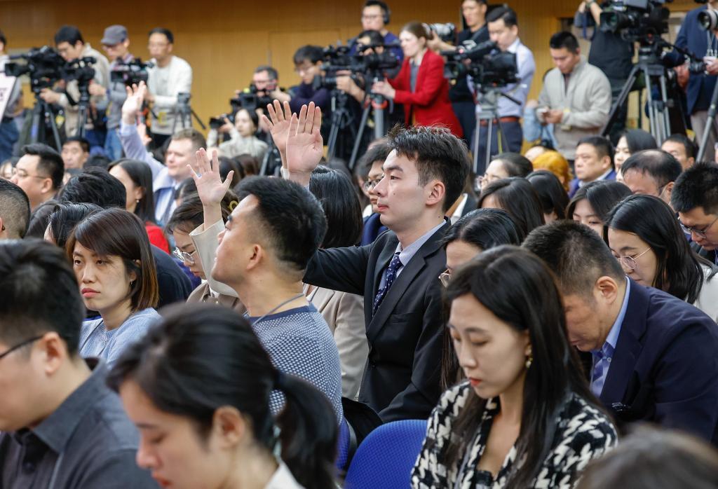 3月6日,十四屆全國(guó)人大三次會(huì)議在北京梅地亞中心新聞發(fā)布廳舉行記者會(huì)。國(guó)家發(fā)展和改革委員會(huì)主任鄭柵潔、財(cái)政部部長(zhǎng)藍(lán)佛安、商務(wù)部部長(zhǎng)王文濤、中國(guó)人民銀行行長(zhǎng)潘功勝、中國(guó)證券監(jiān)督管理委員會(huì)主席吳清就發(fā)展改革、財(cái)政預(yù)算、商務(wù)、金融證券等相關(guān)問題回答中外記者提問。這是記者舉手提問。