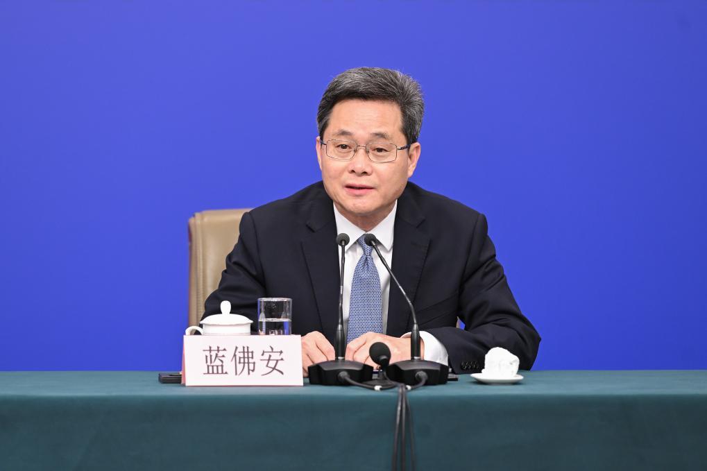 3月6日,十四屆全國(guó)人大三次會(huì)議在北京梅地亞中心新聞發(fā)布廳舉行記者會(huì)。國(guó)家發(fā)展和改革委員會(huì)主任鄭柵潔、財(cái)政部部長(zhǎng)藍(lán)佛安、商務(wù)部部長(zhǎng)王文濤、中國(guó)人民銀行行長(zhǎng)潘功勝、中國(guó)證券監(jiān)督管理委員會(huì)主席吳清就發(fā)展改革、財(cái)政預(yù)算、商務(wù)、金融證券等相關(guān)問題回答中外記者提問。這是藍(lán)佛安在回答記者提問。
