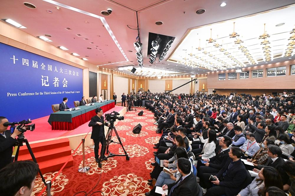 3月7日,十四屆全國(guó)人大三次會(huì)議在北京梅地亞中心新聞發(fā)布廳舉行記者會(huì)。中共中央政治局委員、外交部長(zhǎng)王毅就中國(guó)外交政策和對(duì)外關(guān)系回答中外記者提問(wèn)。這是記者在現(xiàn)場(chǎng)采訪。 新華社記者 陳曄華 攝