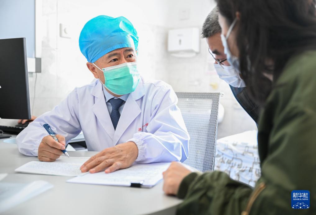 在蘇州大學附屬第一醫(yī)院血液科,全國政協(xié)委員、蘇州大學附屬第一醫(yī)院血液科主任吳德沛和患者家屬交談(2025年2月18日攝)。
