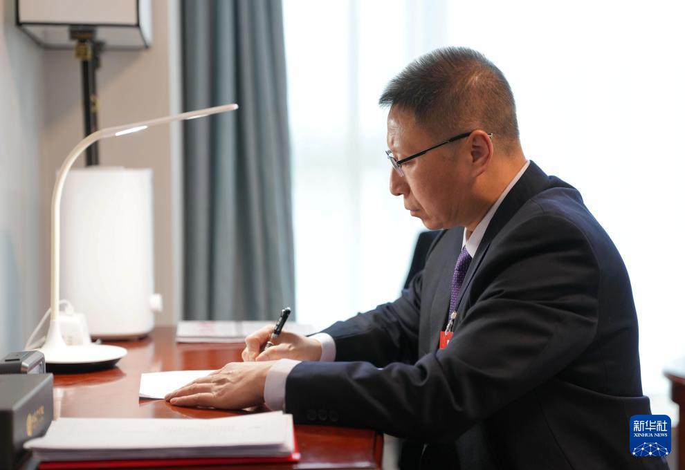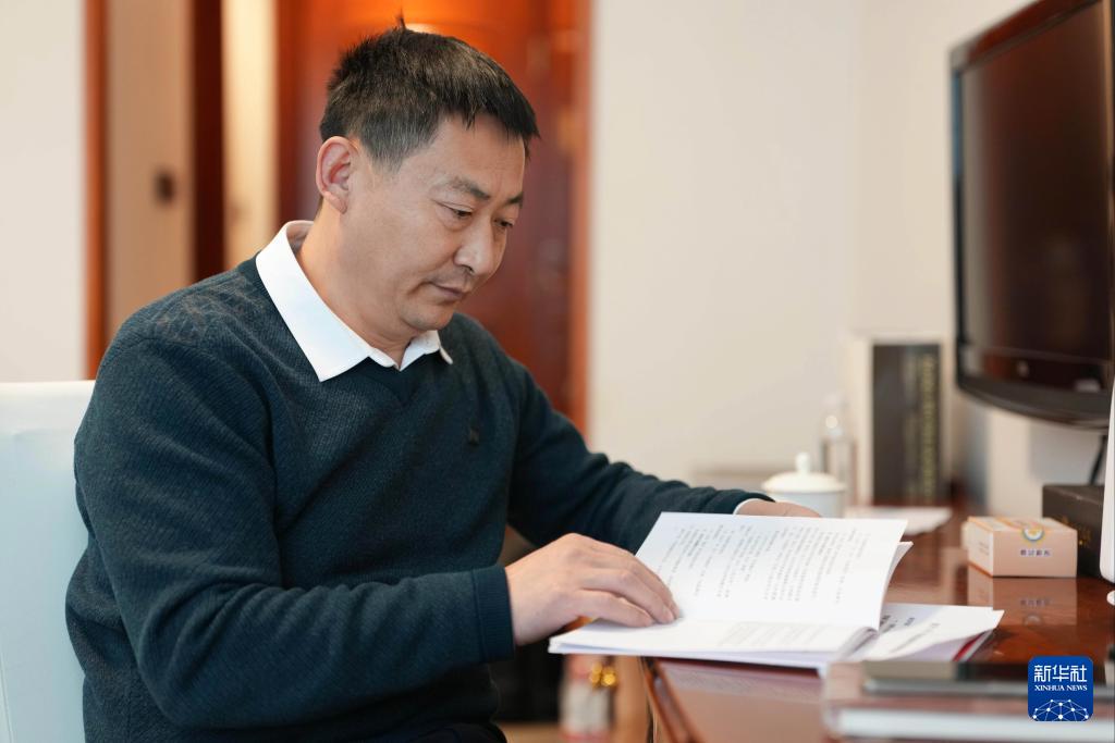 3月3日,全國人大代表、中石化第四建設有限公司工匠學院焊接教練張振連在北京的駐地閱讀文件。