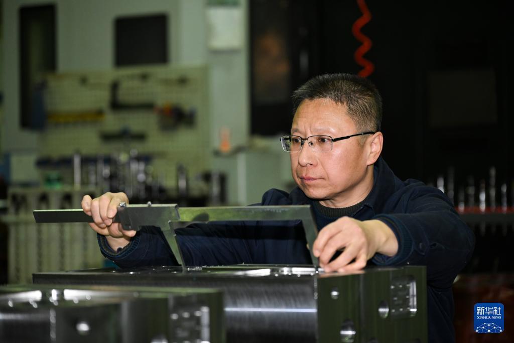 全國人大代表、重慶紅江機械有限責任公司加工中心特級技師傅國濤在重慶紅江機械有限責任公司機械加工車間工作(2025年2月11日攝)。