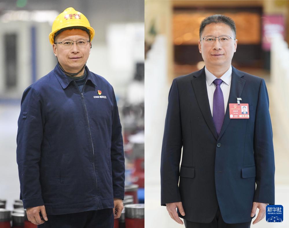 拼版照片:左圖為在重慶紅江機械有限責任公司加工車間拍攝的全國人大代表、重慶紅江機械有限責任公司加工中心特級技師傅國濤(新華社記者王全超2025年2月11日攝);右圖為在十四屆全國人大三次會議重慶代表團駐地拍攝的傅國濤(新華社記者邢廣利2025年3月3日攝)。