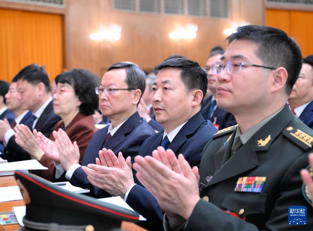 3月5日,全國人大代表、中石化第四建設有限公司工匠學院焊接教練張振連(右二)在北京人民大會堂出席十四屆全國人大三次會議開幕會。