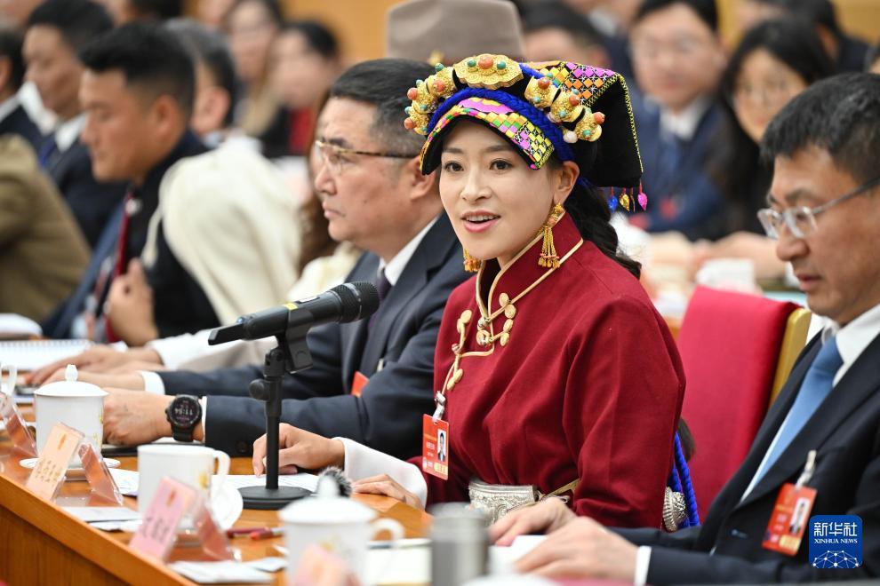 3月7日,全國人大代表、四川省阿壩藏族羌族自治州馬爾康市老年養(yǎng)護院院長格西王姆在十四屆全國人大三次會議四川代表團全體會議上發(fā)言。