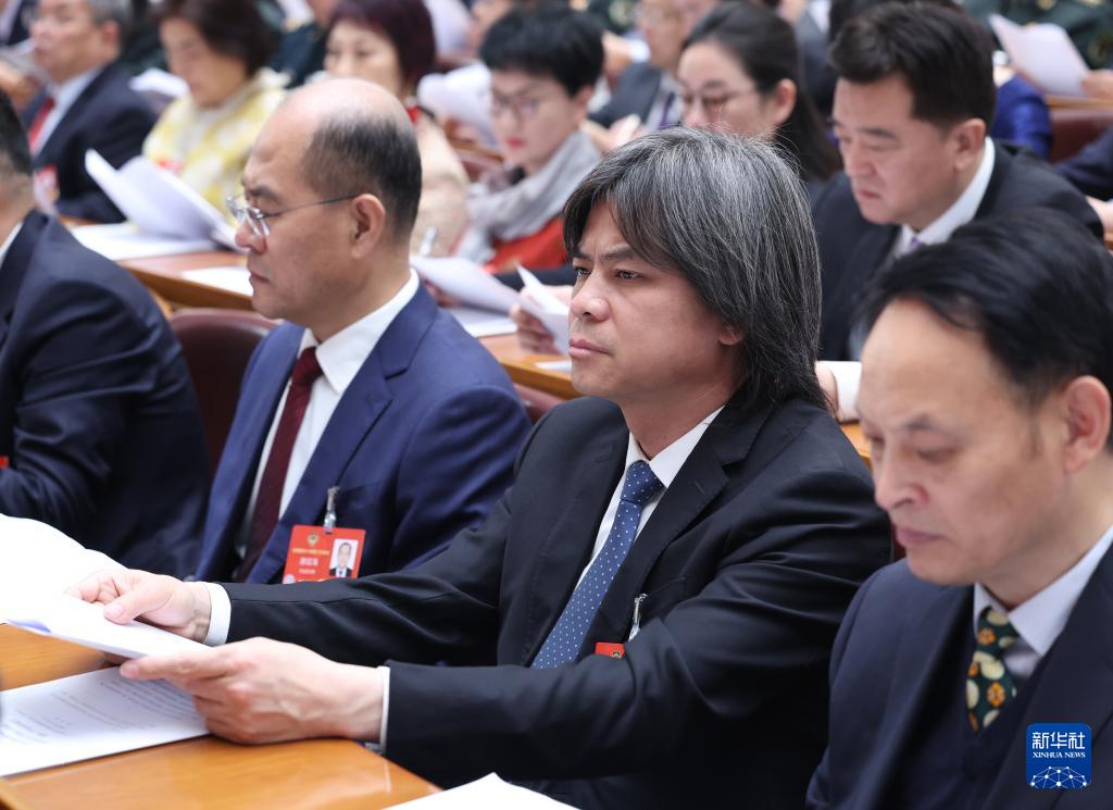 3月5日,全國人大代表、重慶紅江機械有限責任公司加工中心特級技師傅國濤在北京人民大會堂出席十四屆全國人大三次會議開幕會。