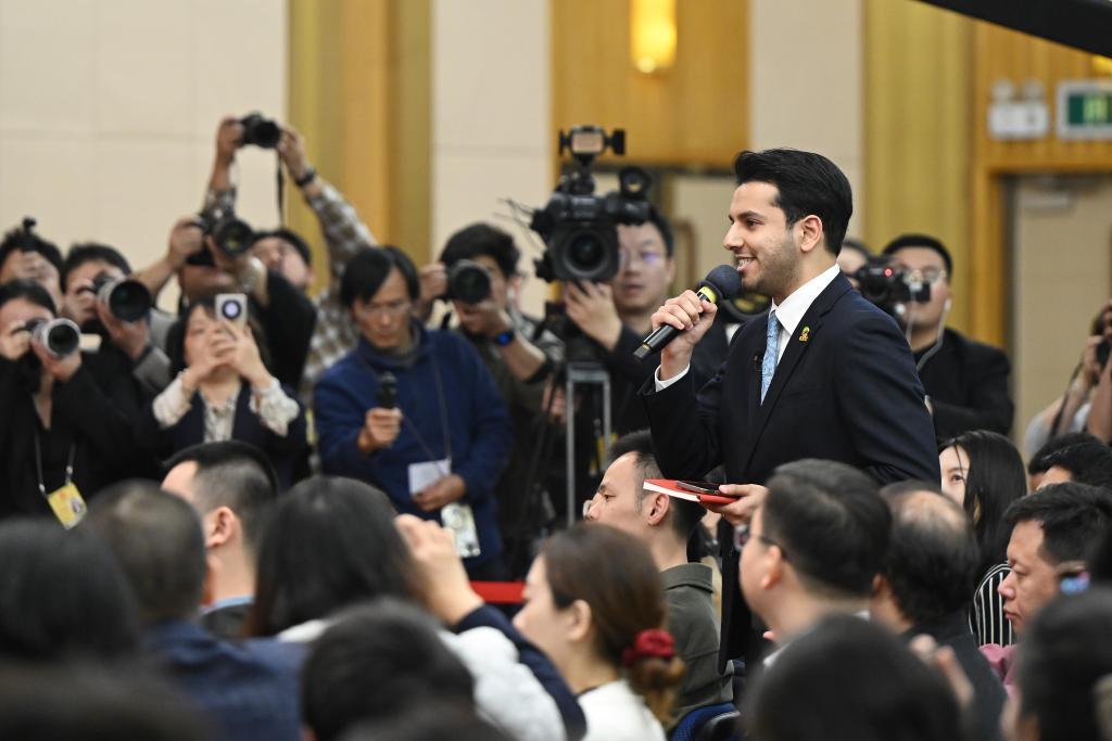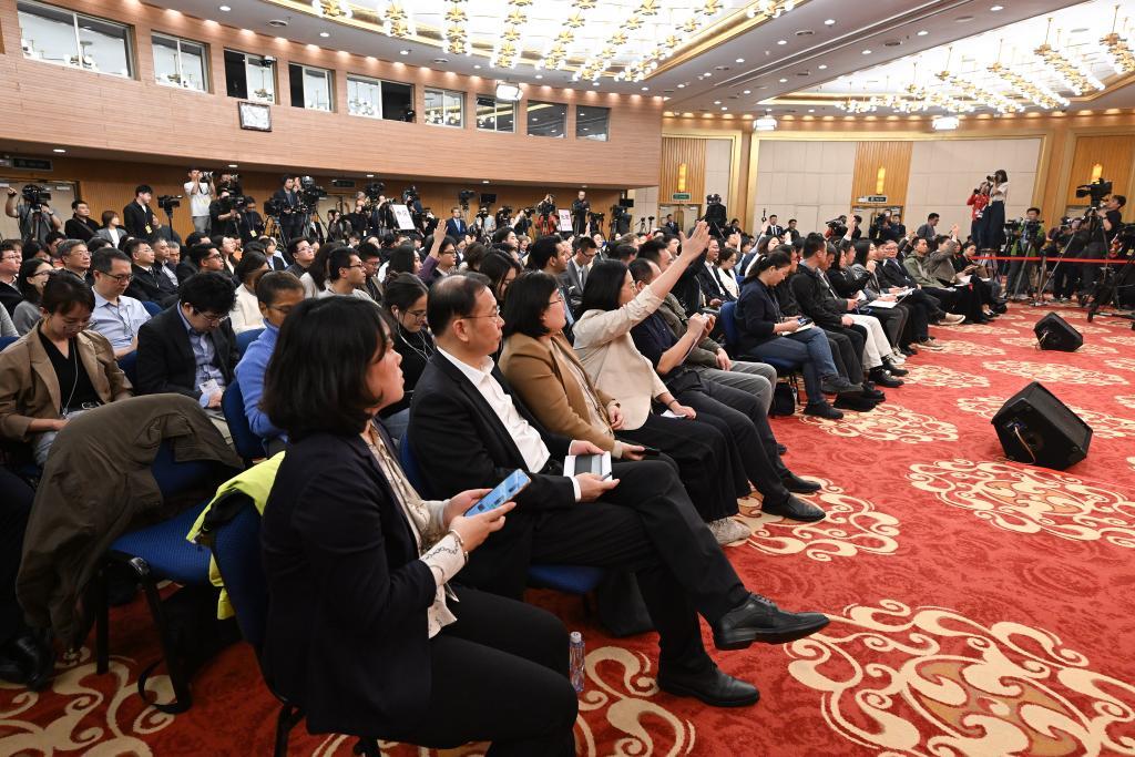 3月9日,十四屆全國人大三次會議在北京梅地亞中心新聞發(fā)布廳舉行記者會。民政部部長陸治原、人力資源和社會保障部部長王曉萍、住房和城鄉(xiāng)建設(shè)部部長倪虹、國家衛(wèi)生健康委員會主任雷海潮就民政、就業(yè)和社會保障、住房、衛(wèi)生健康等相關(guān)問題回答中外記者提問。這是記者在提問。
