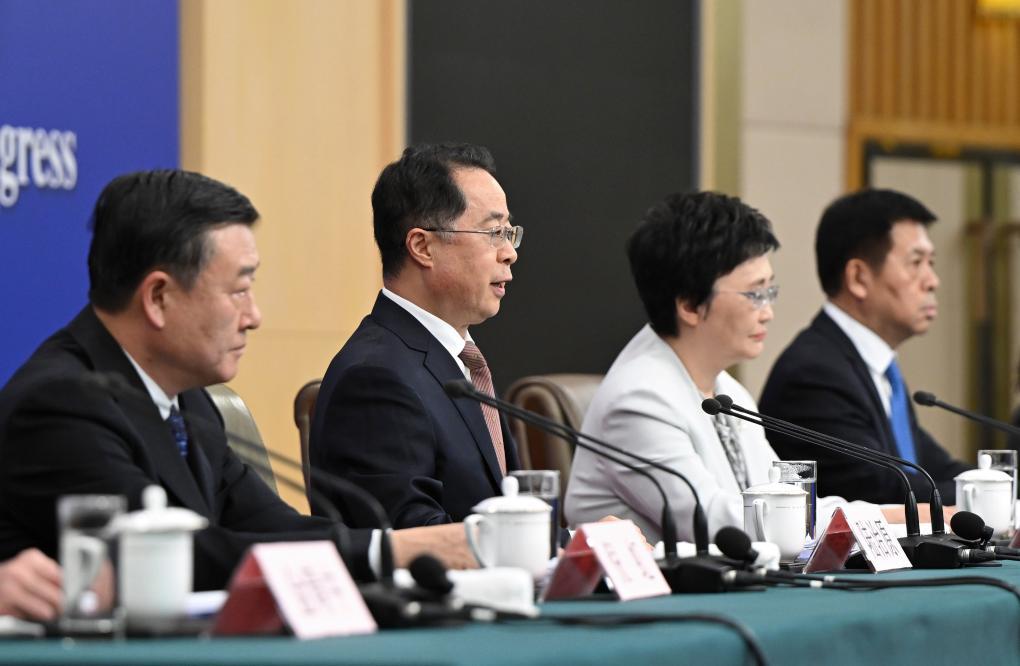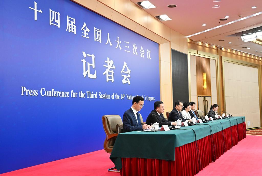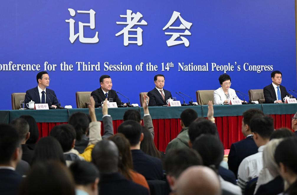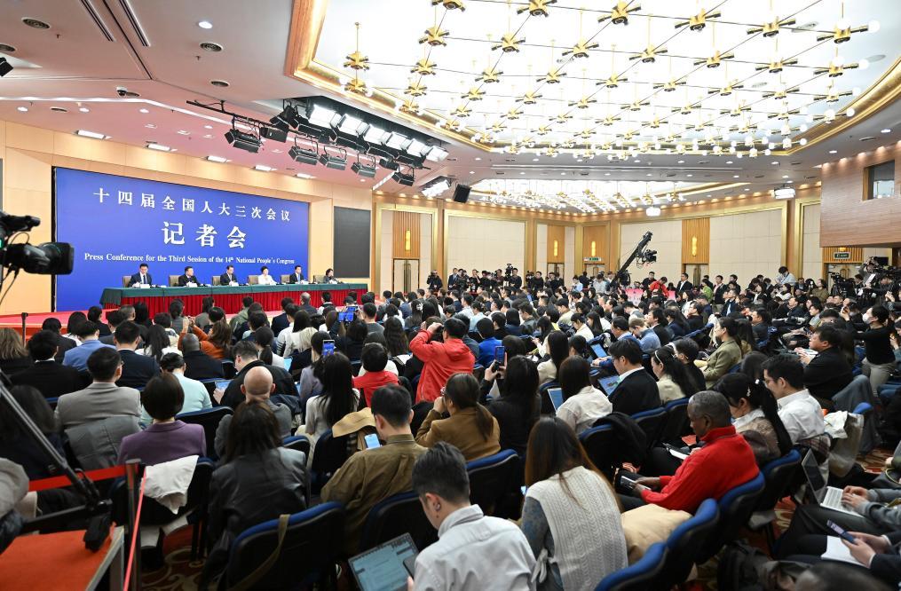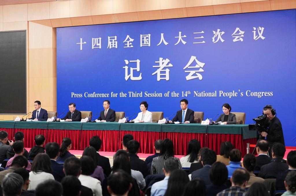 3月9日,十四屆全國人大三次會議在北京梅地亞中心新聞發(fā)布廳舉行記者會。民政部部長陸治原、人力資源和社會保障部部長王曉萍、住房和城鄉(xiāng)建設(shè)部部長倪虹、國家衛(wèi)生健康委員會主任雷海潮就民政、就業(yè)和社會保障、住房、衛(wèi)生健康等相關(guān)問題回答中外記者提問。