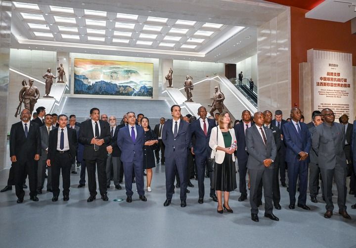 駐華外交官來(lái)到中國(guó)人民抗日戰(zhàn)爭(zhēng)紀(jì)念館,參觀紀(jì)念中國(guó)人民抗日戰(zhàn)爭(zhēng)暨世界反法西斯戰(zhàn)爭(zhēng)勝利80周年主題展覽《為了民族解放與世界和平》(2025年7月17日攝)。新華社記者 陳曄華 攝