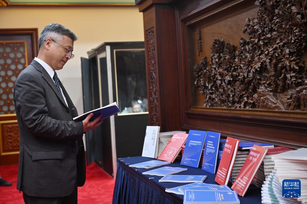 9月5日,參會嘉賓翻閱《回望歷史 捍衛(wèi)正義——世界反法西斯戰(zhàn)爭東方主戰(zhàn)場的偉大貢獻》智庫報告。新華社記者 金良快 攝