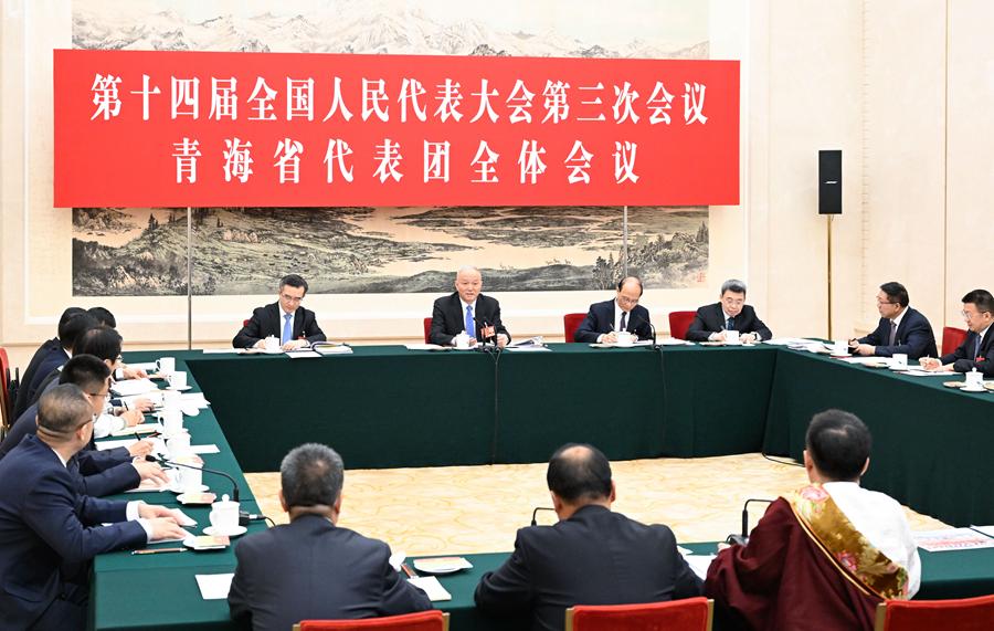 中共中央政治局常委、中央書記處書記蔡奇7日上午來到他所在的青海代表團(tuán),同代表們一起審議。